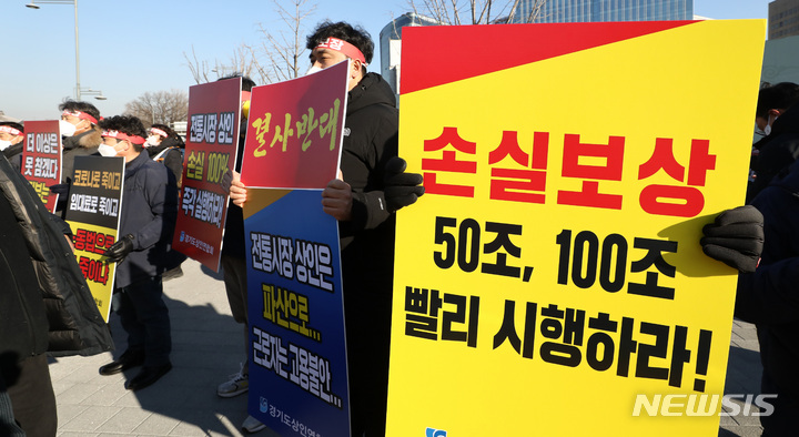 "대선 후보들, 100% 손실보상 합의하라"…경기 자영업자들 상경 집회