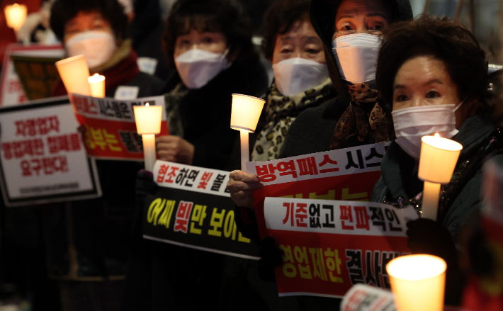 자영업자 촛불집회 '영업제한 철폐' 요구