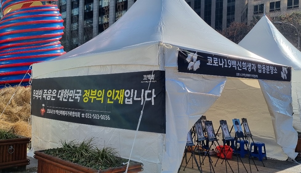 청계광장 앞 '코로나백신 희생자' 분향소…중구 "철거방침"